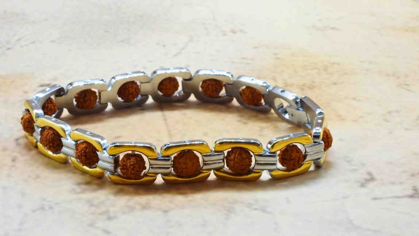 Dual Tone Gold Plated Rudraksha Bracelet (8 Inches)