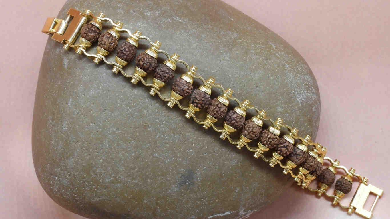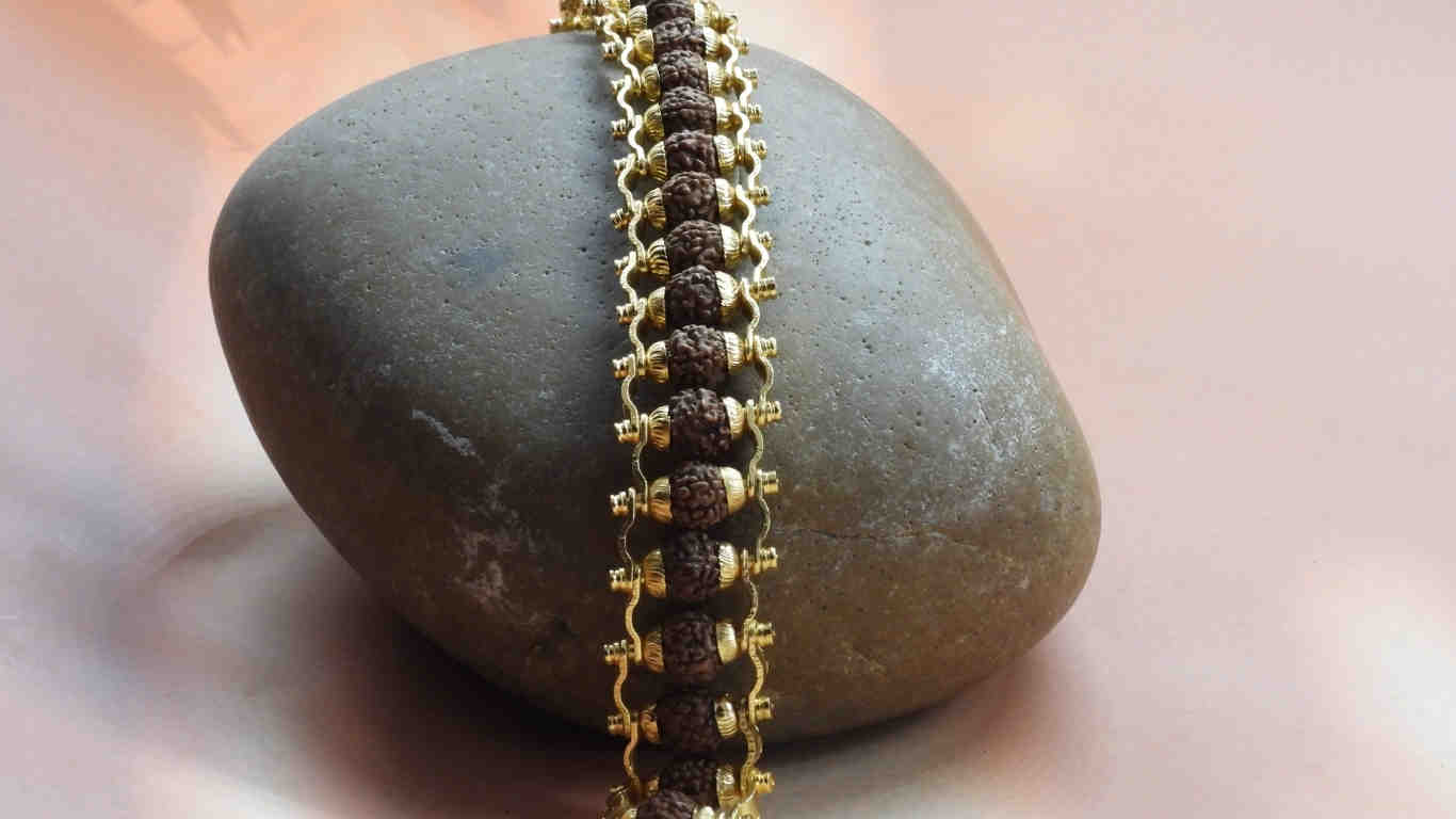 Premium Gold Finish: The high-quality gold plating provides a radiant, mirror-like shine that beautifully contrasts with the deep, earthy tones of the natural Rudraksha.