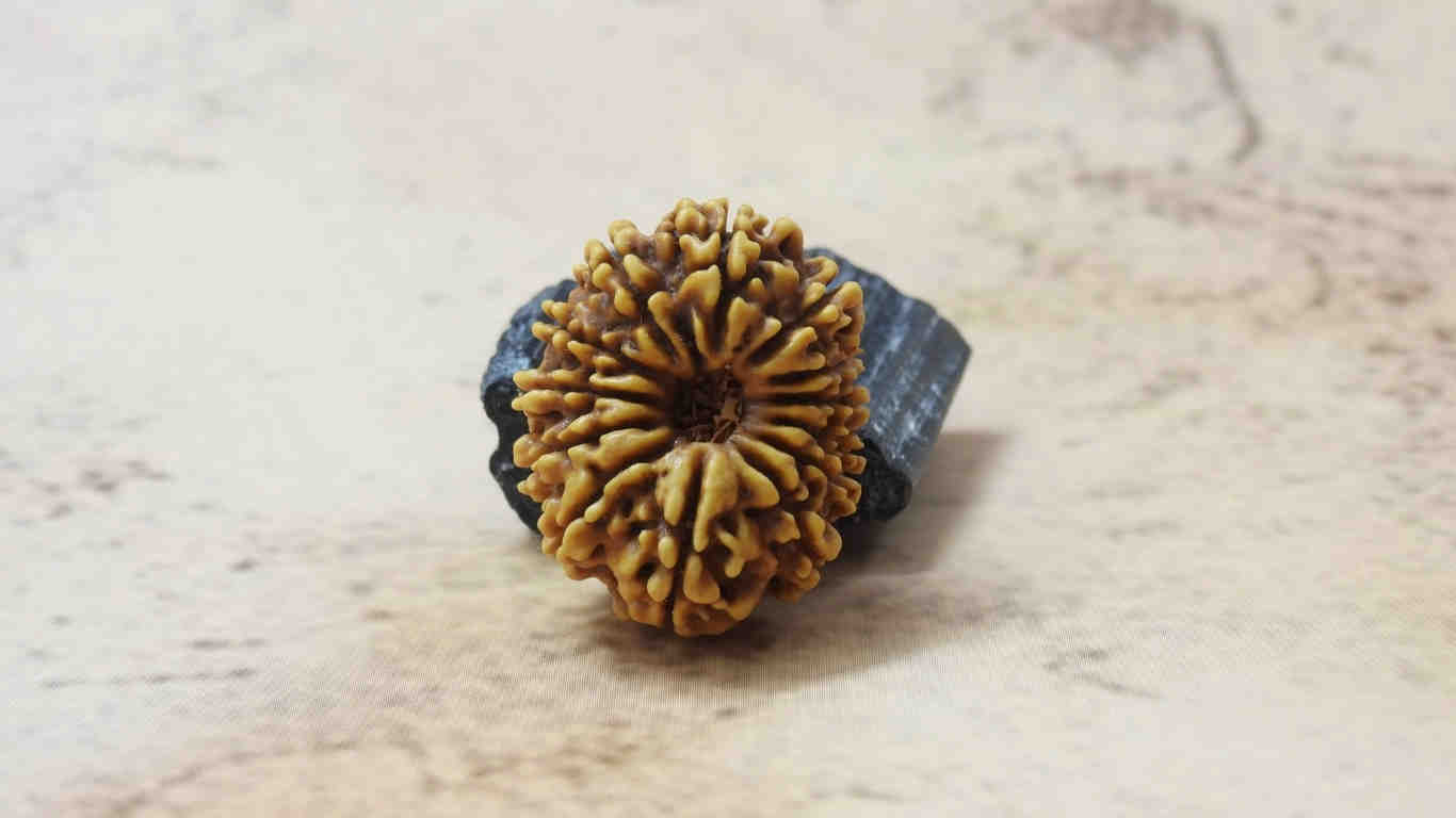 14 முகி ருத்ராட்சம்சிவபெருமானால் ஆசீர்வதிக்கப்பட்டது மற்றும் அவரது கண்களில் இருந்து நேரடியாக உற்பத்தி செய்யப்பட்டது, அது ஒரு சிறப்பு அந்தஸ்தை அளிக்கிறது.